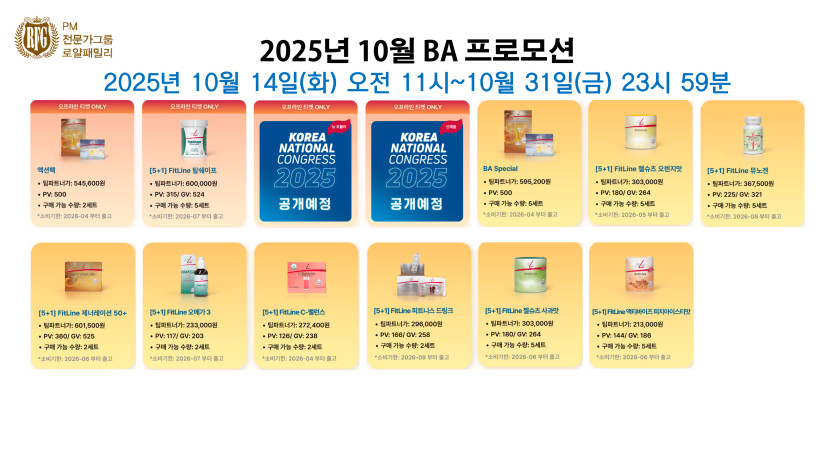 2025년 10월 BA프로모션 안내 페이지 정보 작성자 최고관리자 댓글 0건 조회 41회 작성일 25-10-12 12:05 목록 답변 글쓰기 본문 2025년 10월 BA프로모션 안내 이전글2025년 10월 18일(토) RFG 가을운동회 25.10.12 다음글2025년 10월 추석 인사 25.10.05 댓글 0 댓글목록 등록된 댓글이 없습니다. 목록 답변 글쓰기