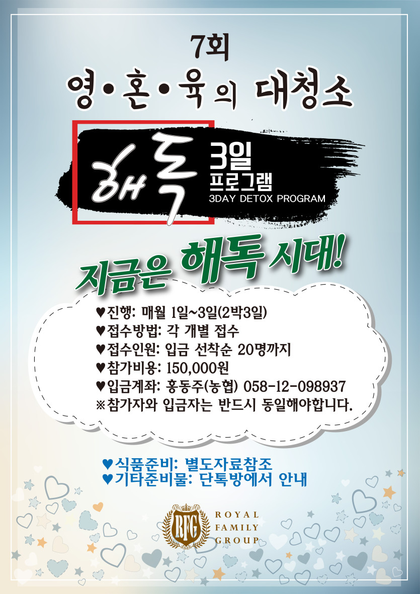 매달 1일~3일까지 진행하는 해독힐링캠프